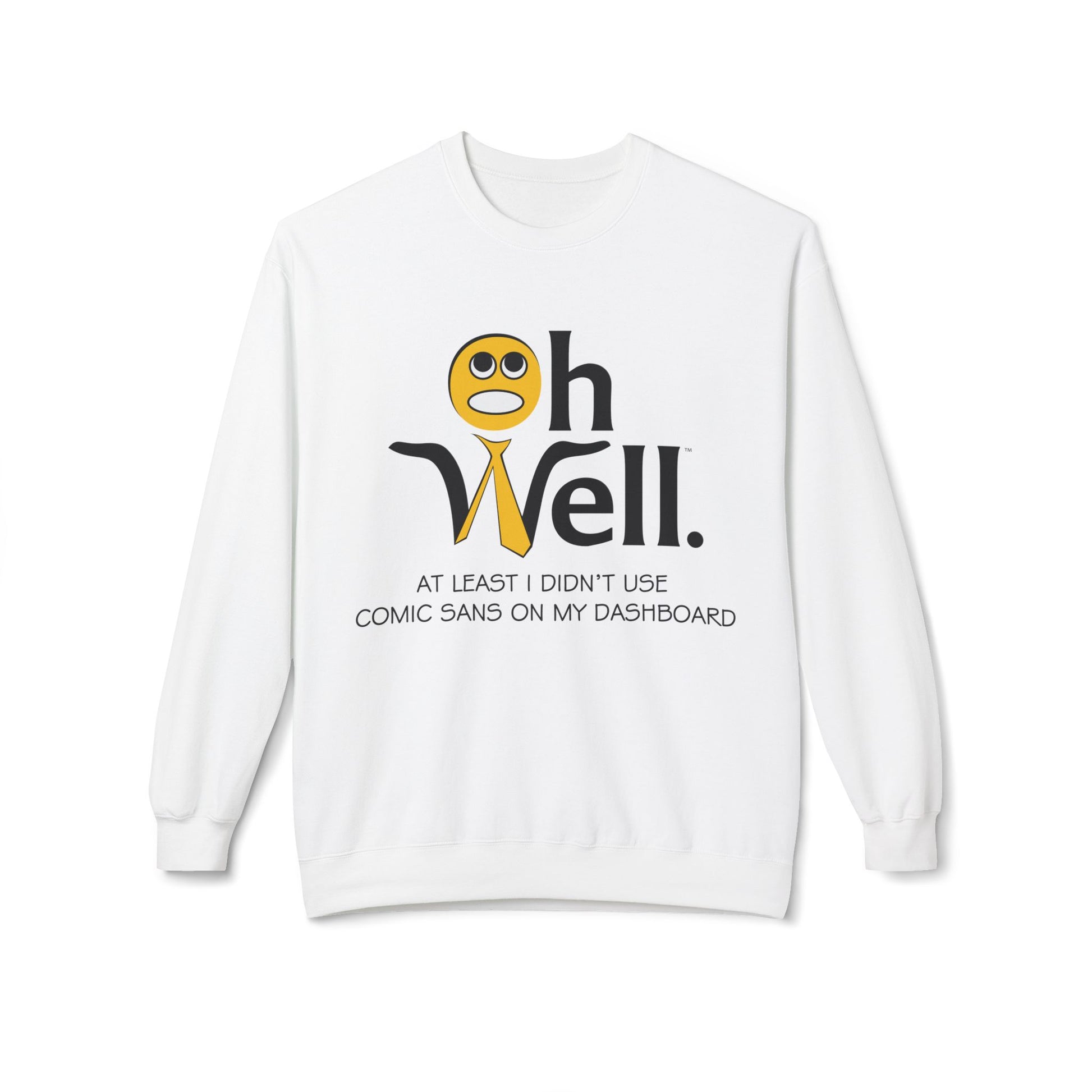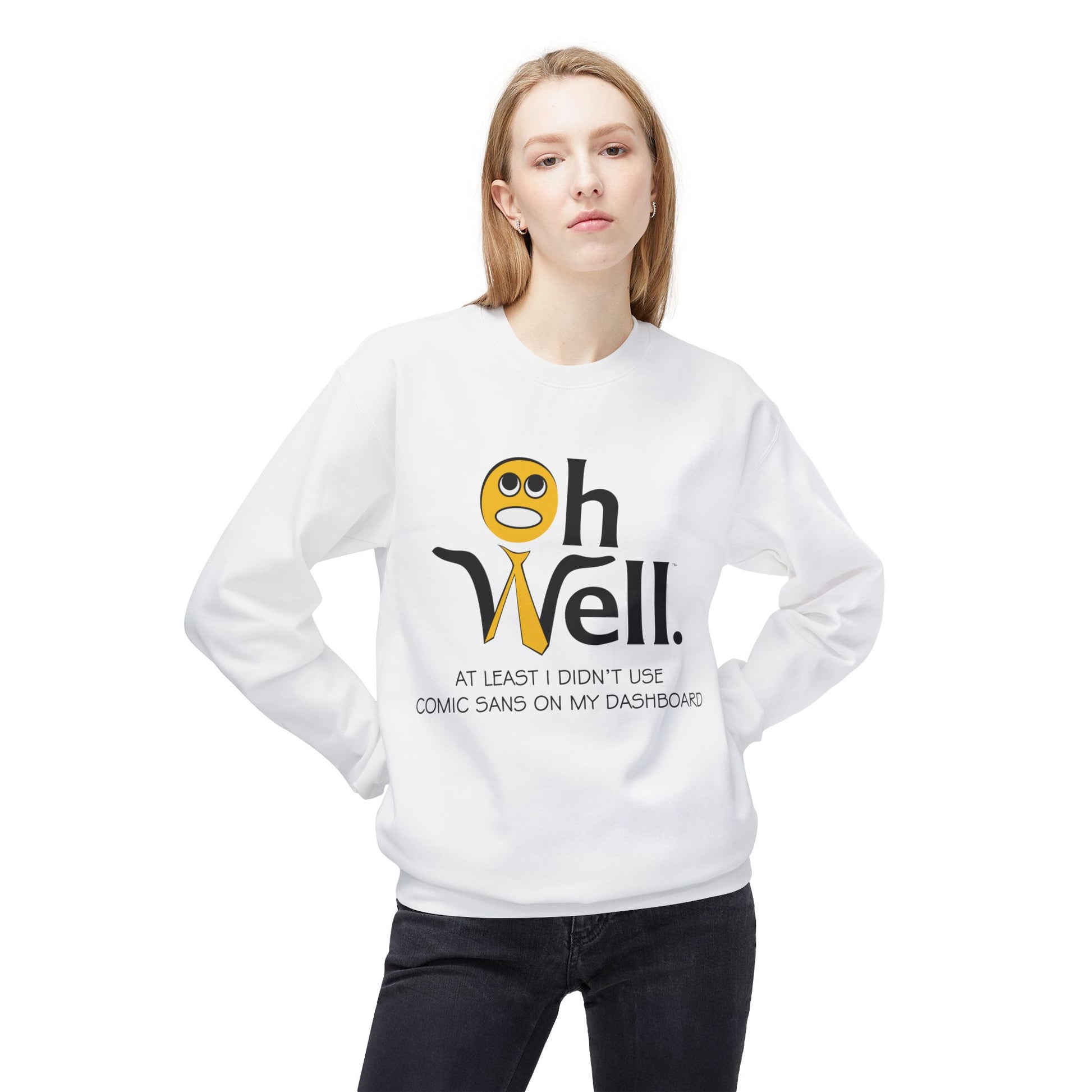 Crewneck Sweatshirt with Oh Well Logo and "At Least I Didn't Use Comic Sans On My Dashboard"