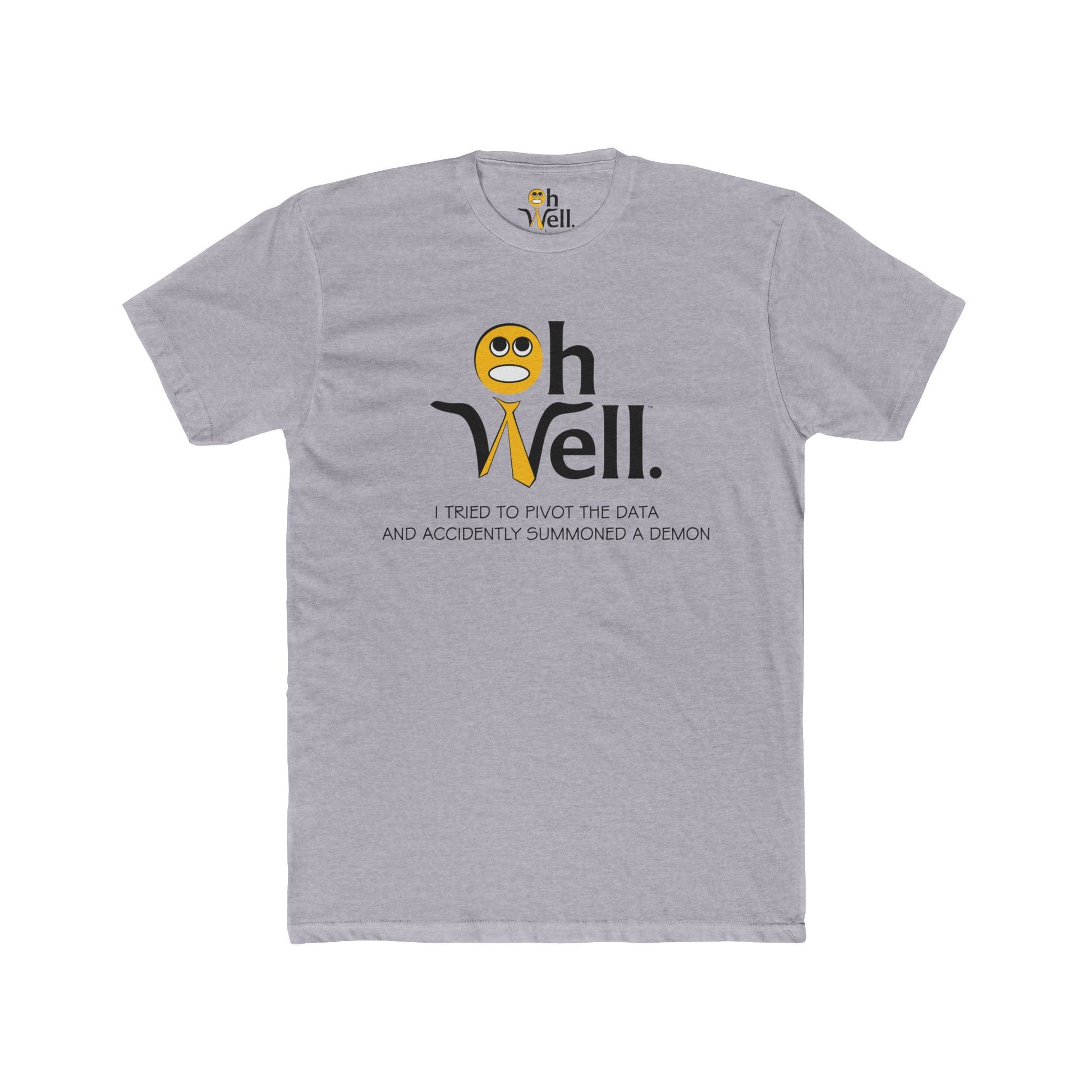 Funny Unisex Cotton Crew Tee - 'Oh Well, I Tried to Pivot the Data and Accidently Summoned a Demon'