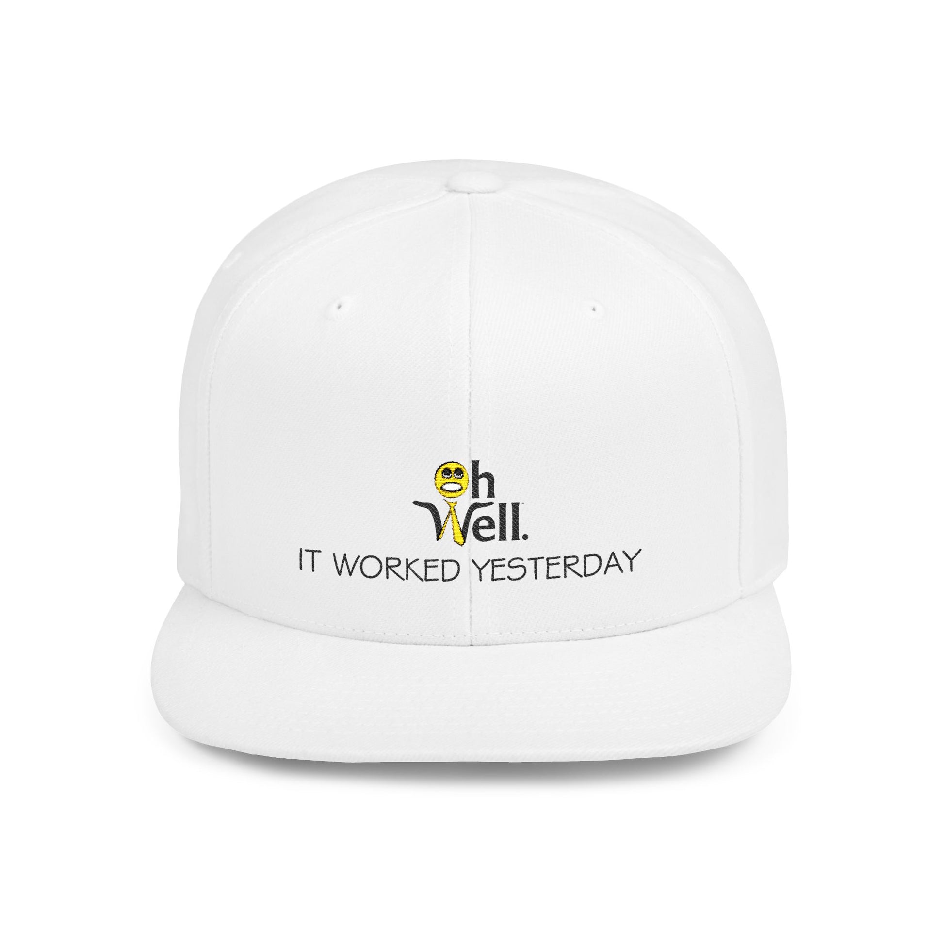 Oh Well Flat Bill Snapback Hat - Funny phrase 'Oh Well It Worked Yesterday'
