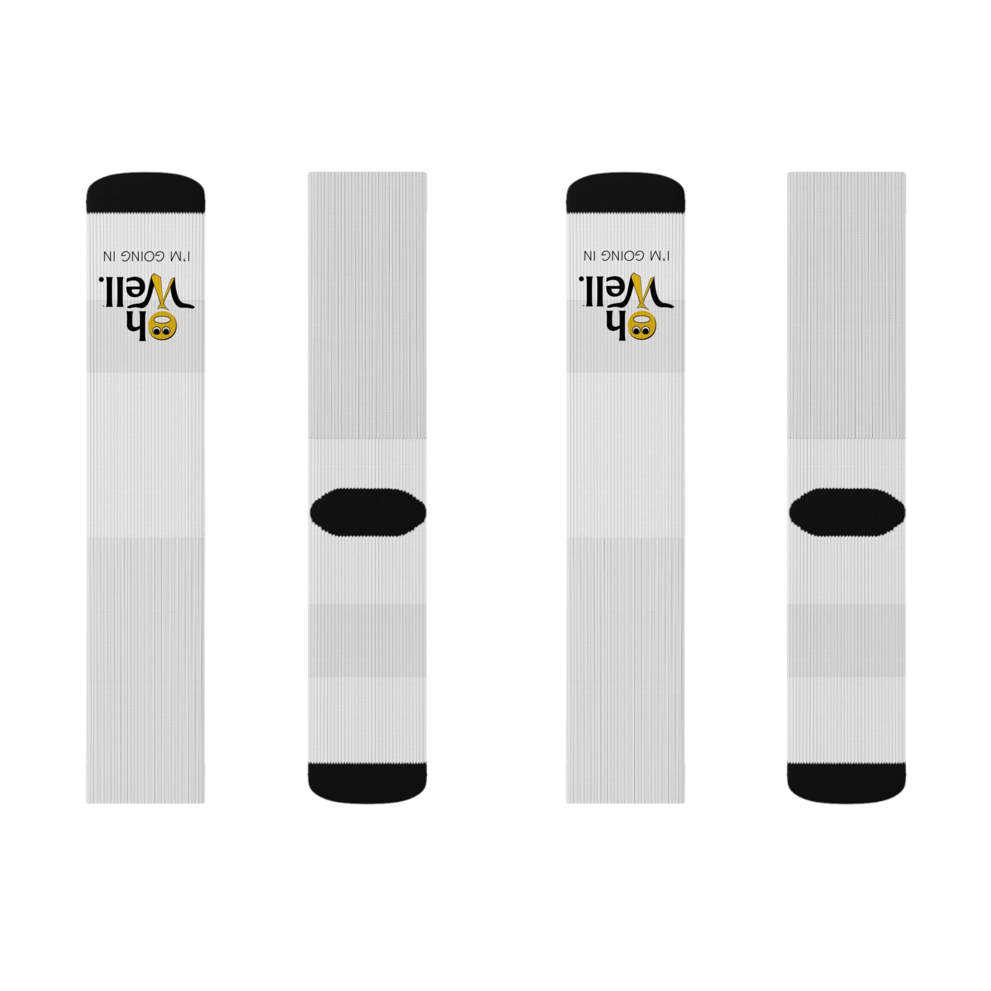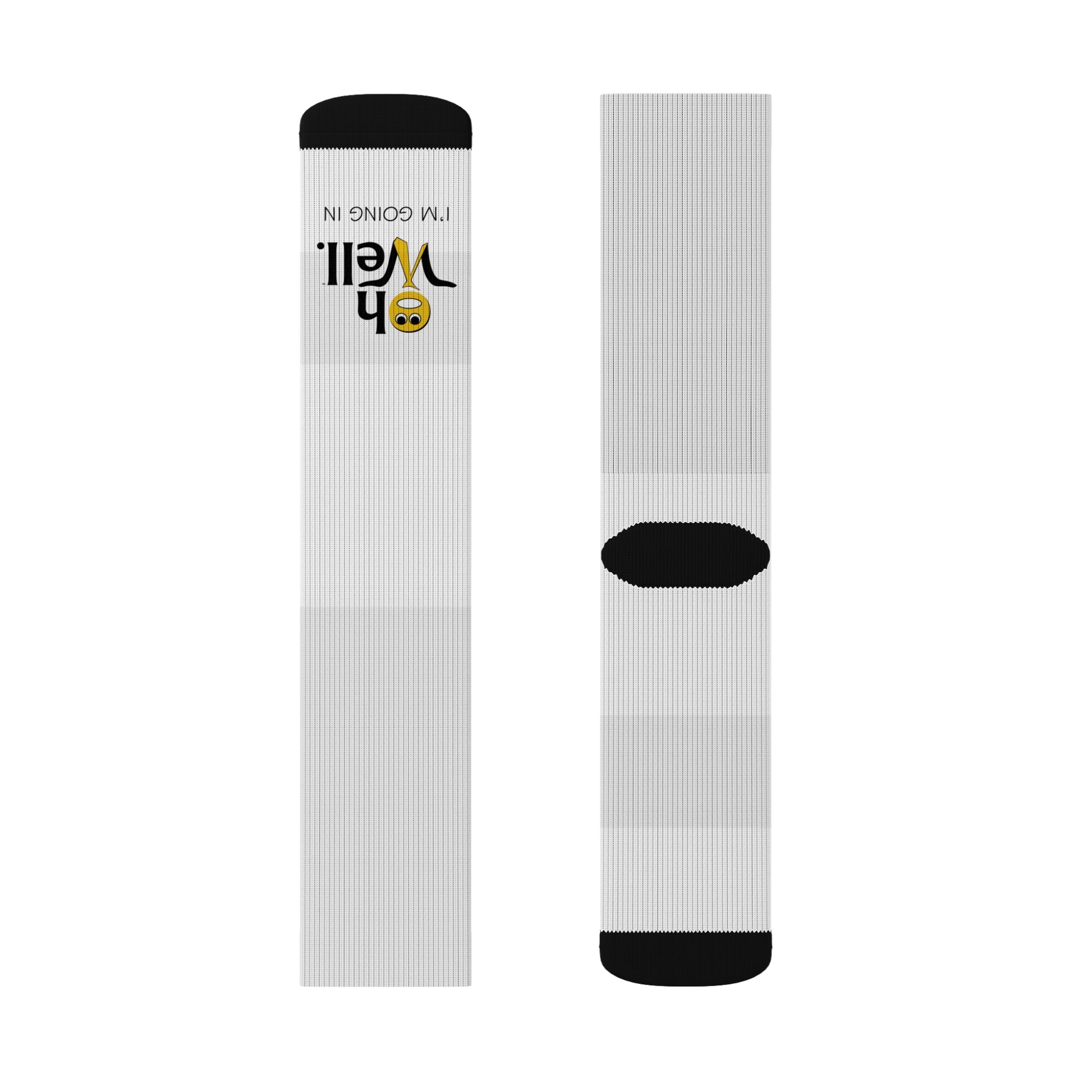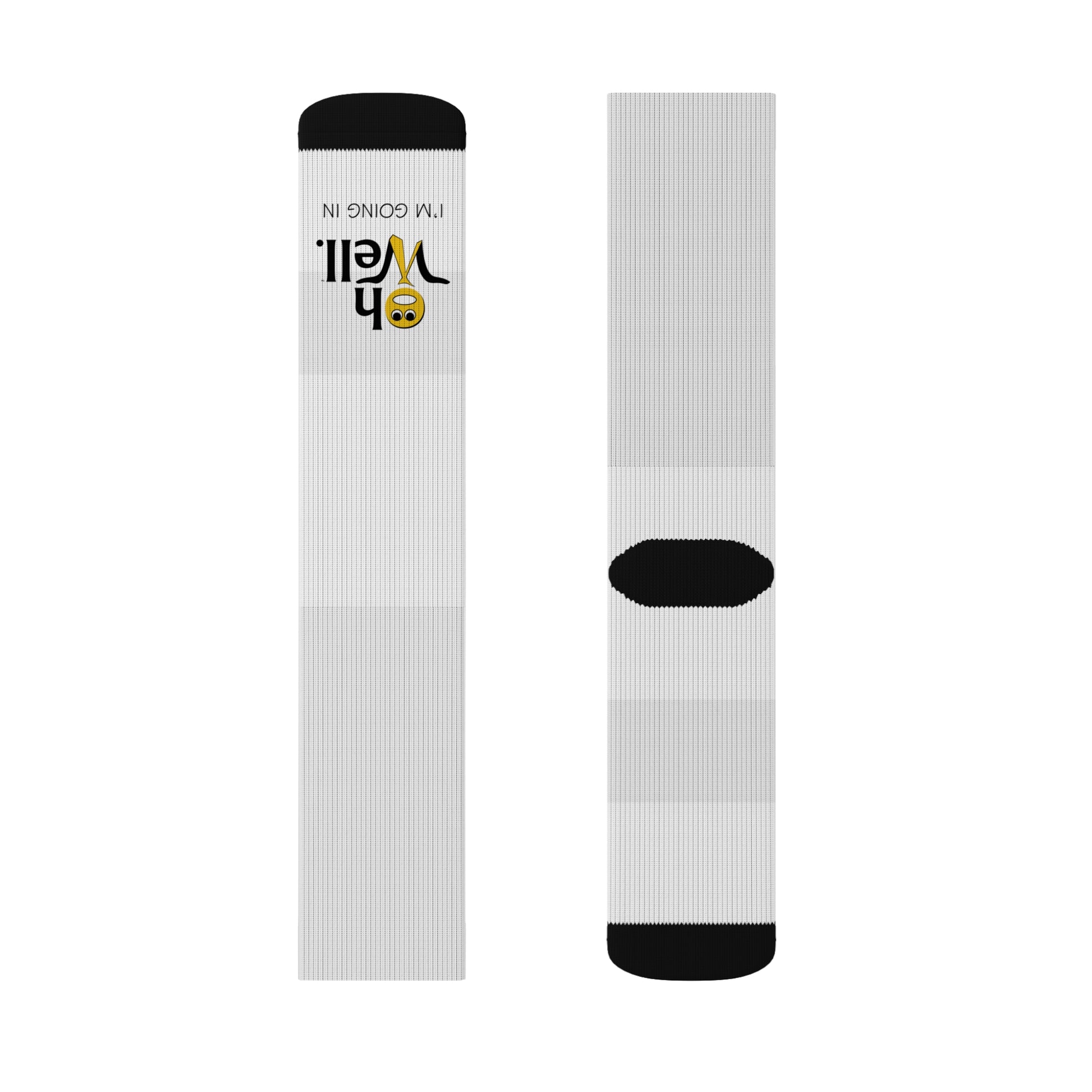 These sublimation socks feature the phrase " I'm Going In" with the Oh Well logo, giving off a playful and carefree vibe. Perfect for those who appreciate humor in their everyday life. Ideal for gifting during birthdays, holidays, or just to bring a smile to someone's face.