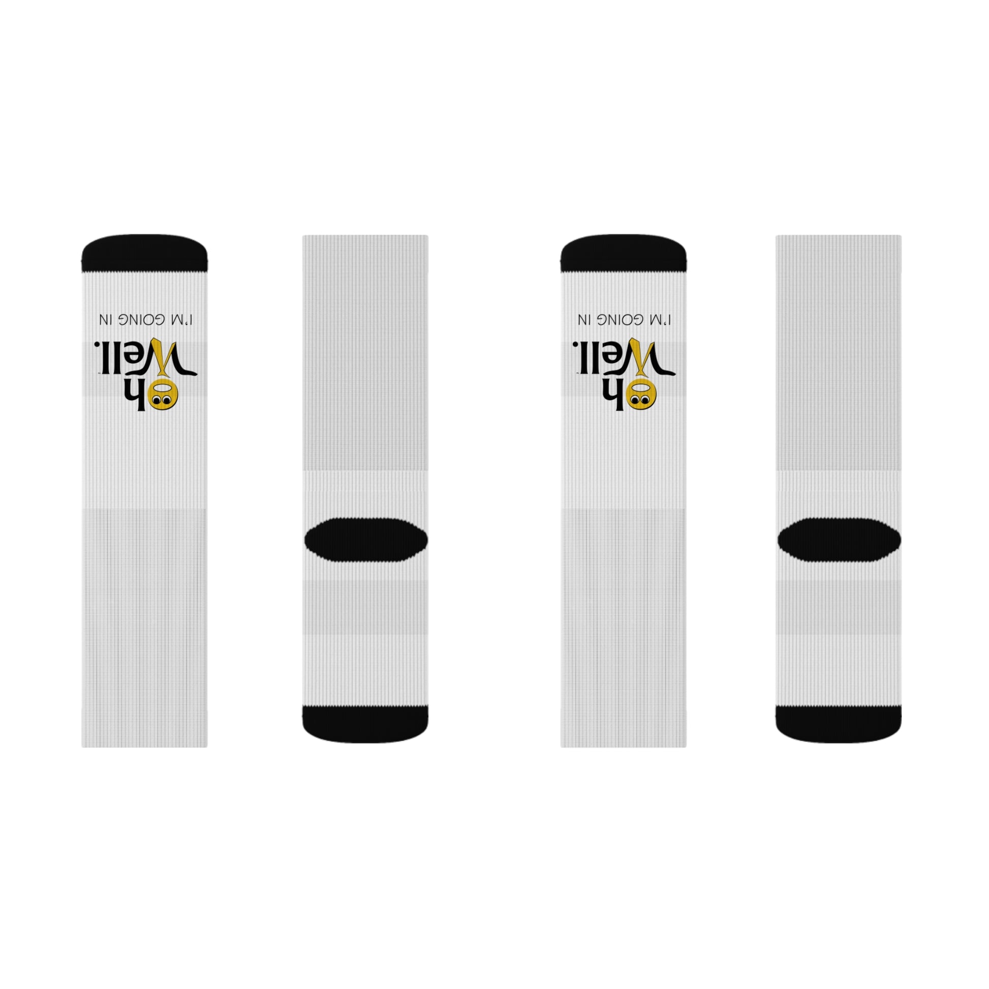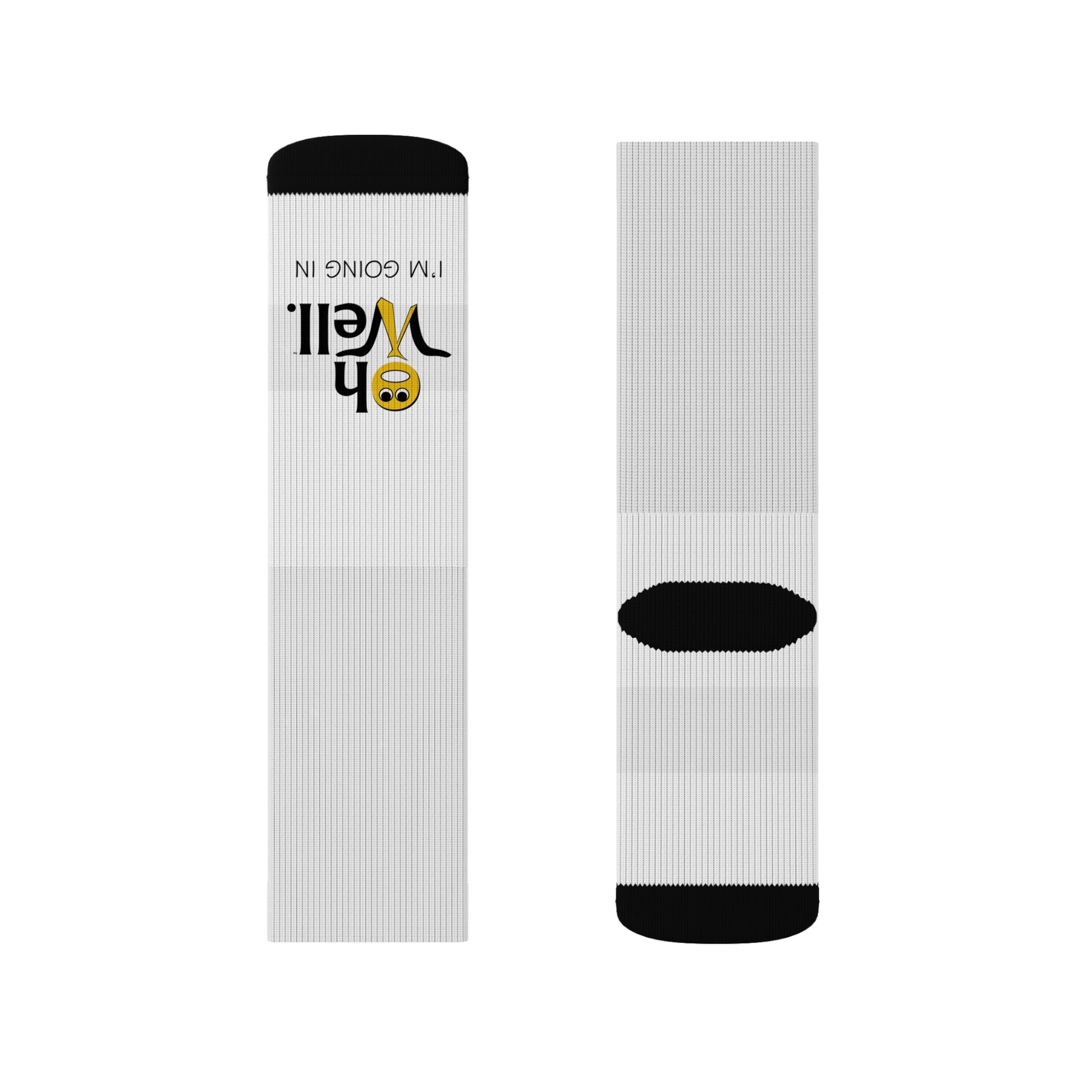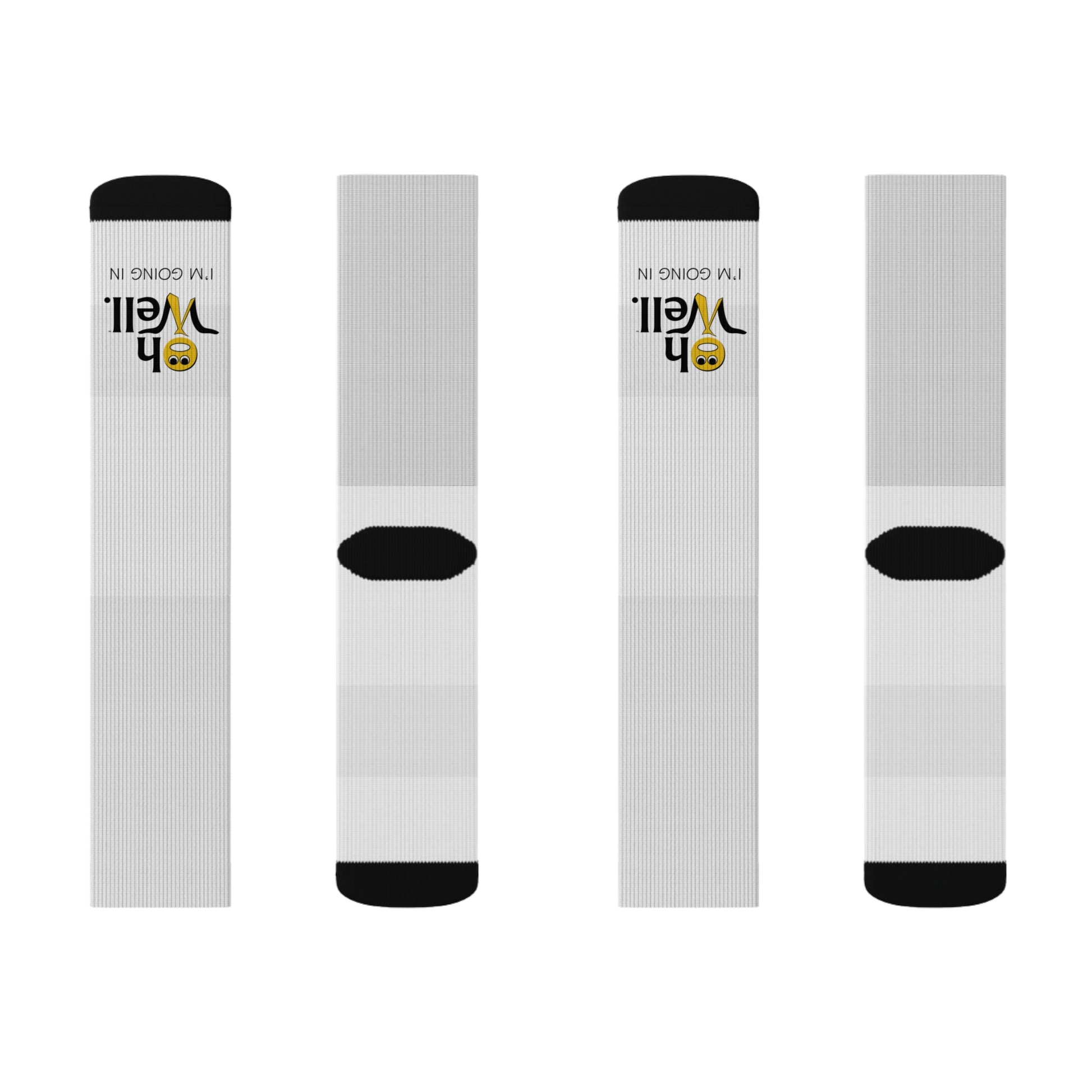 These sublimation socks feature the phrase " I'm Going In" with the Oh Well logo, giving off a playful and carefree vibe. Perfect for those who appreciate humor in their everyday life. Ideal for gifting during birthdays, holidays, or just to bring a smile to someone's face.